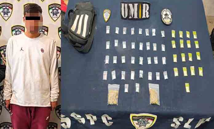 Un sujeto de 32 años de edad que al parecer vendía droga en el Centro de Abastos, fue detenido por Policías Municipales cuando lo detectaron consumiendo enervantes en la Central de Abastos y en su poder le encontraron 51 dosis de cristal y dos envoltorios que contenían marihuana.