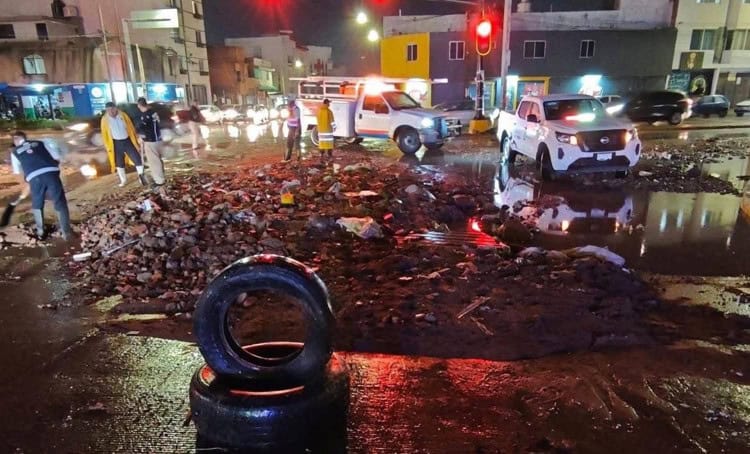 El colapso de una alcantarilla en el cruce de Coronel Romero y Urbano Villalón, al surponiente de la capital, dejó la vialidad cubierta de lodo, basura y escombros la tarde de este lunes, luego de las lluvias que se registraron en la zona.