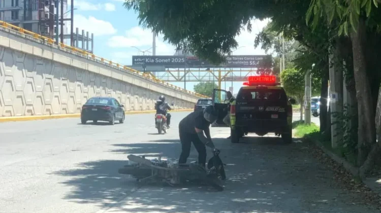 La motocicleta quedó averiada de una llanta delantera, por lo que un oficial de la SSPC auxilió al joven, que resultó con lesiones leves.