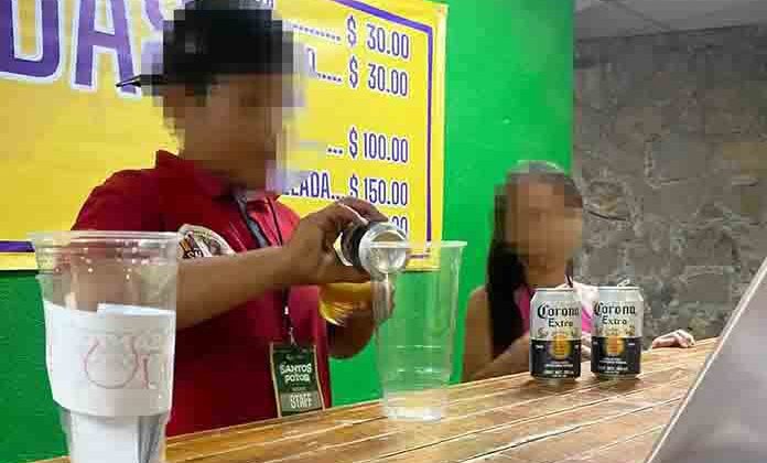 El staff encargado de la venta de cerveza en los partidos del Santos del Potosí, pone a menores de edad a atender la barra de bebidas. De acuerdo con la denuncia expuesta a este medio, al menos dos menores atendían la barra en el auditorio Miguel Barragán, durante el encuentro de este jueves.