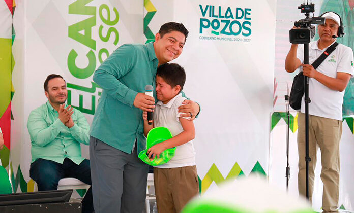 Ricardo Gallardo Cardona, gobernador de San Luis Potosí, celebró el Día de la Niñez con niñas y niños de Villa de Pozos, con quienes convivió y entregó obsequios, además de poner en servicio la modernizada área recreativa en la colonia Rancho Viejo II.