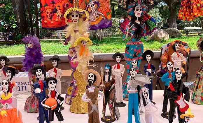 Juanita Jacobo, participante en la exposición de mercancías y productos relacionados con las festividades del Día de Muertos, explicó que las figuras de papel maché se hicieron a la par de algunos suvenires con imán y el nombre de Villa de Pozos pensando en que fueran del agrado tanto de las y los residentes de Villa de Pozos como de las personas que visitan el municipio en esta temporada.