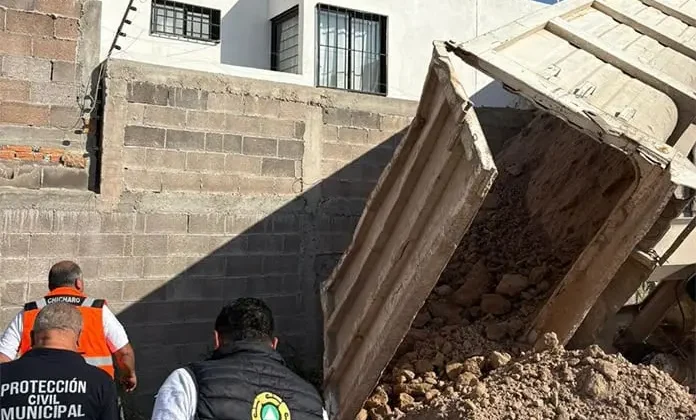 Descargaba tierra cuando se fue sobre las bardas traseras de los inmuebles