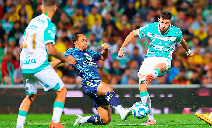 Fuer un primer tiempo extraño, con mucho juego cortado por constantes incidentes dentro del campo y donde dos jugadores u, uno por bando, salieron del campo por lesión, Aldo López (Santos) y Erick “Chiquito” Sánchez (América).