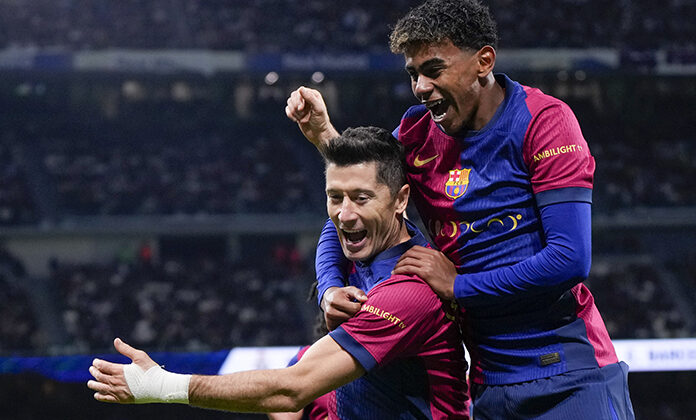 MADRID.- Robert Lewandowski celebró un doblete en un par de minutos, durante una explosión ofensiva de cuatro dianas en la segunda mitad, para golear 4-0 al Real Madrid, en el primer Clásico de la Liga española, con el que se afianzaron en el liderato del curso.