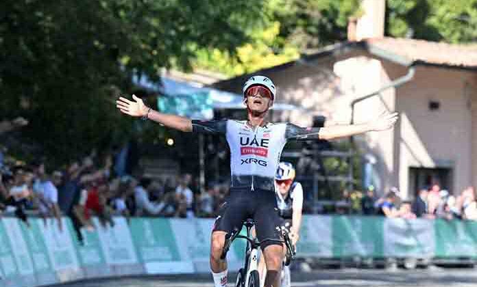 El mexicano, revelación del año y estrella del UAE Team Emirates, se impuso al británico Thomas Pidcock y al francés Lenny Martínez, firmando su victoria número 14 de la temporada.