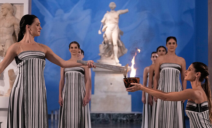 El mal tiempo que azotó el oeste de Grecia obligó a los organizadores a trasladar la ceremonia de encendido de la antorcha al interior, desde el antiguo estadio y templos de Olimpia hasta un museo cercano.
