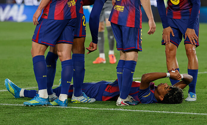 Yamal salió del campo por su propio pie tras ser atendido por los médicos. Habló brevemente con el técnico Hansi Flick en la banda antes de caminar solo hacia el túnel de vestuarios.