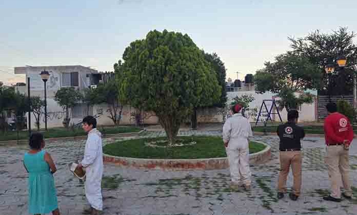 Al lugar también acudieron elementos de Protección Civil Municipal y Bomberos que en coordinación acordonaron el área para evitar que más personas fueran atacadas por el enjambre, ya que había muchas.