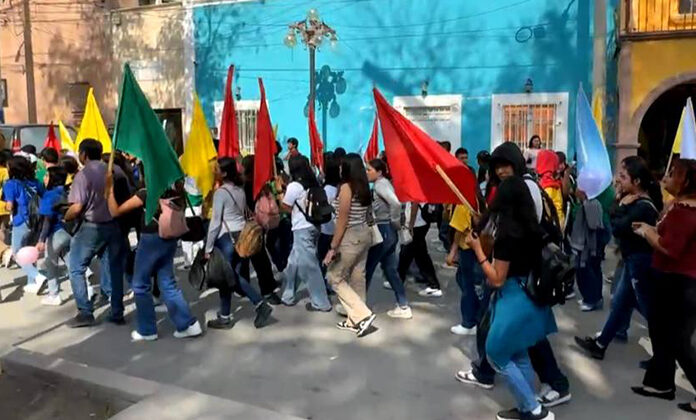 Los jóvenes que asistieron al Precongreso Nacional Juvenil Misionero marcharon por las principales calles de la ciudad cargando banderas, orando por la paz del mundo, México y sobre todo de Matehuala, para que regrese esos tiempos en que la gente podía salir a las calles sin pensar que fuera a ocurrirles algo malo.