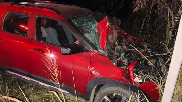 Tras la colisión, la unidad cruzó al carril contrario y terminó fuera del camino.