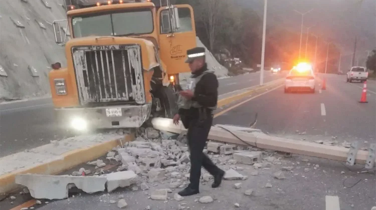 TANCANHUITZ.– El chofer de un camión que circulaba por la carretera federal Valles-Tamazunchale trepó al camellón y chocó contra un poste de la Comisión Federal de Electricidad.