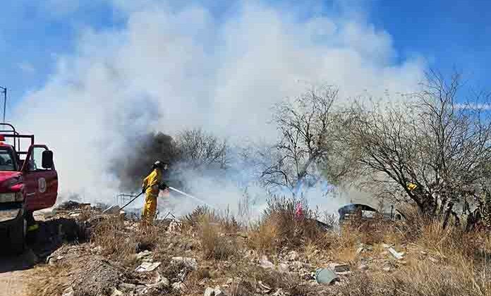 Matehuala.- Elementos del Cuerpo de Bomberos acudieron a controlar tres incendios en lotes baldíos en solo día; gracias a la pronta acción de los “tragahumo” no hubo personas lesionadas y el fuego lo logró controlar.