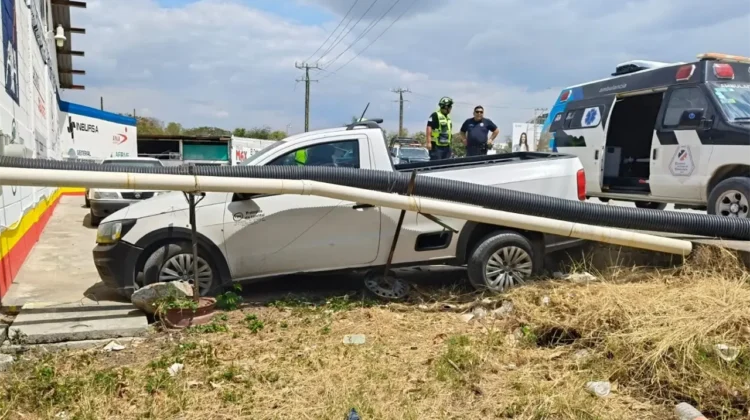 CIUDAD VALLES.- Una camioneta se salió del camino y cayó a un desnivel, frente a la agencia cervecera Corona; la conductora resultó con golpes leves.