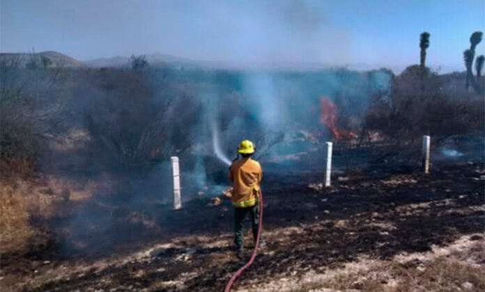 Matehuala.- Bomberos continúan su labor controlando incendios que se están generando en diferentes puntos de la ciudad, al parecer la ciudadanía no entiende y hace quemas de basura las cuales se salen de control en esta ocasión les tocó ir a La Lagunita donde se generó un incendio en un predio baldío, afortunadamente gracias a la oportuna acción de los tragahumo pudieron controlar el siniestro.