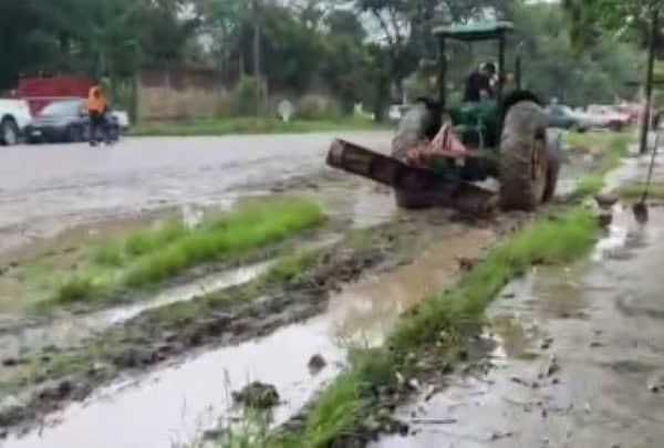 De acuerdo con imágenes compartidas en sus redes sociales, hay calles y caminos anegados por la bajada de agua de los ejidos de la zona norte. La bajada de la cascada del Meco registra un enroma caudal.