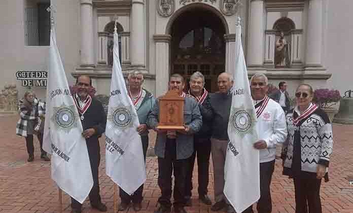 Matehuala.- El presbítero Antonio Ruiz Domínguez, párroco de la parroquia de Olivar de las Ánimas acompañado de integrantes de la Adoración Nocturna de Matehuala, acudió a la Catedral Metropolitana de Monterrey para recibir las reliquias de San Pascual Bailón, santo patrono de la Adoración Nocturna, las cuales traerán a la Diócesis de Matehuala.