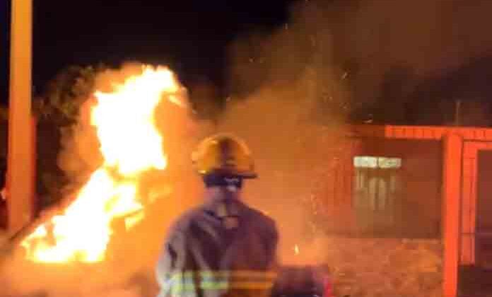 Matehuala.- La madrugada del domingo se originó un fuerte incendio en una bodega donde hay muchos artículos reciclables como botellas de plástico entre otros, además se quemó una camioneta que estaba cerca y había el riesgo de que se propagara el fuego.
