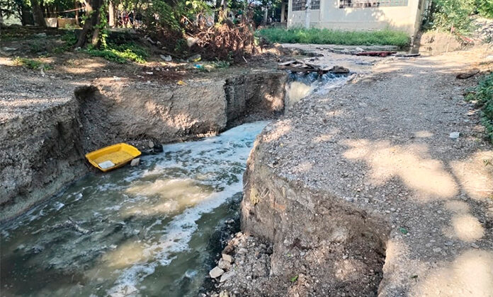 CIUDAD VALLES. El callejón Matamoros de la Tetuán ha sido partido en dos por la corriente de aguas negras que ha horadado el suelo desde hace tres meses que se colapsó el drenaje en ese lugar.