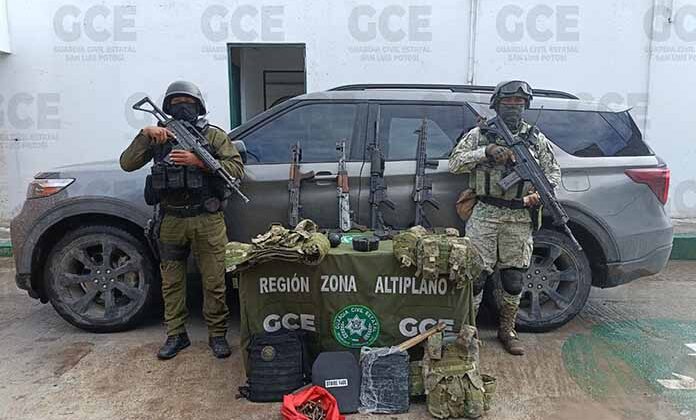 MATEHUALA.- En un camino de terracería de la comunidad de Sacramento, perteneciente a este municipio, elementos de la Guardia Civil Estatal localizaron una camioneta abandonada por delincuentes en la que había un arsenal presumiblemente de la delincuencia organizada.