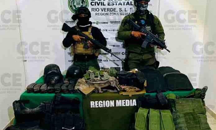 En carretera San Ciro de Acosta, comunidad de Vaqueros, agentes de la GCE efectuaban tareas de seguridad y vigilancia, así como trabajos de inteligencia para el combate a la delincuencia logrando la ubicación en dos cajas organizadoras mismas que contenían vario equipamiento, municiones y equipo táctico.