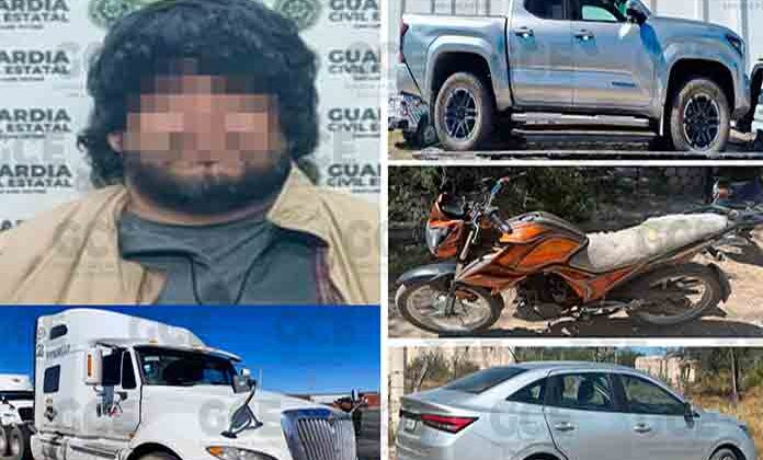 El primer hallazgo fue en el municipio de Villa de Pozos, en donde se detuvo a Fernando “N” de 38 años, luego de asegurarle un tractocamión color blanco, que había sido robado en Tijuana, Baja California.