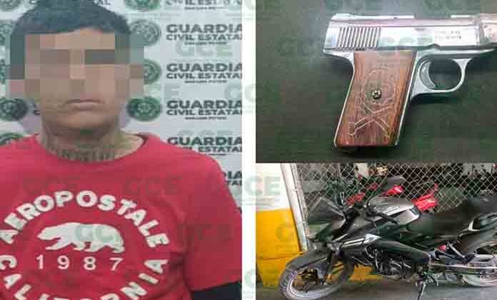 Le aseguraron una pistola tipo escuadra calibre .32, sin cartuchos útiles, por lo que al no comprobar la propiedad legal de la unidad, fue detenido y puesto a disposición de la Fiscalía General del Estado.