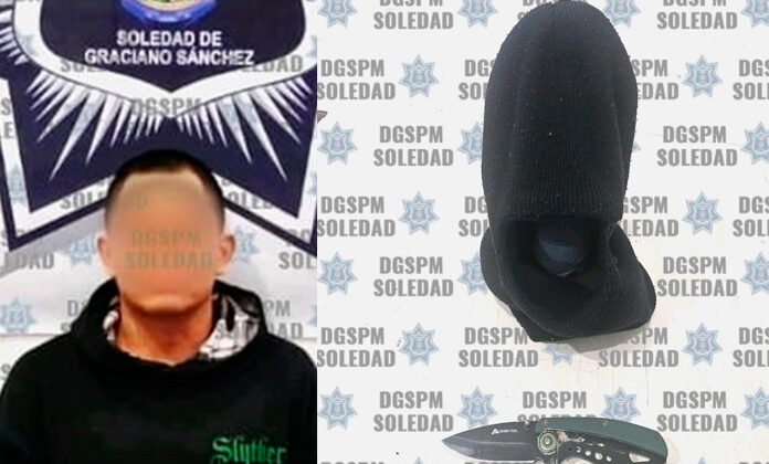 En trabajos para prevenir delitos, oficiales de Seguridad Pública de Soledad detuvieron a un sujeto que portaba una navaja y además llevaba pasamontañas, por lo se sospecha que esperaba perpetrar asaltos en la zona.
