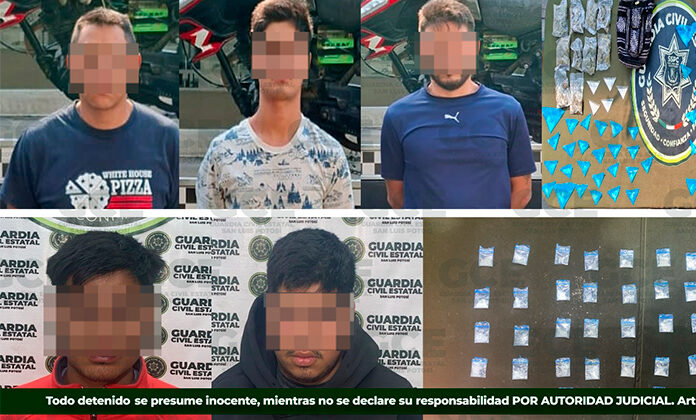 De igual manera, mediante la Base de Operaciones Mixta Interinstitucional (BOMI), en la zona centro del municipio de Villa de Arriaga, se detuvo a Irving “N” de 20 años y a Juan “N” de 19 años, luego de asegurarles 40 dosis de metanfetaminas.