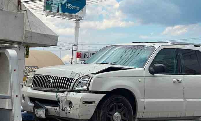 Al circular por la avenida Salvador Nava Martínez, una camioneta se impactó contra un poste de alumbrado público al que derribó por completo, aunque afortunadamente no hubo lesionados en este hecho.