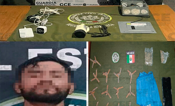 TAMASOPO.- Un presunto informante de una célula delictiva, fue detenido en un operativo de la Guardia Civil Estatal realizado en Tamasopo en donde también aseguraron cámaras de videovigilancia presuntamente usadas por delincuentes.