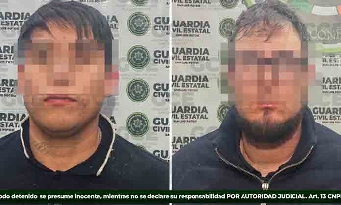 Luego de enfrentar a balazos a agentes policiales al norte de la capital potosina, dos individuos fueron capturados por la Guardia Civil Estatal cuando se daban a la fuga a bordo de una camioneta, se les vincula a una célula delictiva generadora de violencia en la zona.