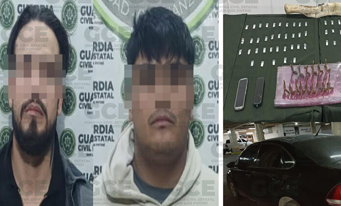 Dos presuntos delincuentes, al parecer integrantes de un grupo delictivo, fueron capturados por elementos de la Guardia Civil Estatal que los detectaron en el municipio de Villa de Reyes, siendo remitidos ante la autoridad respectiva.