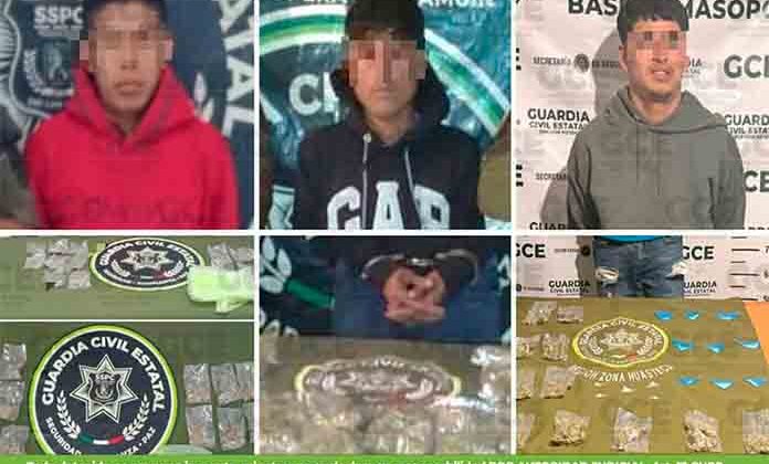 En el marco de la cobertura que brinda la Guardia Civil Estatal para brindar mayor protección y seguridad a toda la población, se informa la detención de tres presuntos vendedores de estupefacientes a través de distintas acciones efectuadas en municipios de la zona Huasteca.