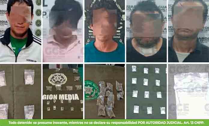 En el marco de las acciones preventivas, realizadas durante los operativos en la entidad potosina, nuestros agentes de la Guardia Civil Estatal detuvieron a cinco objetivos prioritarios, posiblemente vinculados a la distribución de narcóticos.