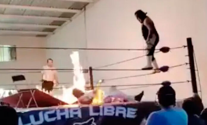 En pelea celebrada en SLP, luchador sufre quemaduras de segundo grado por práctica peligrosa