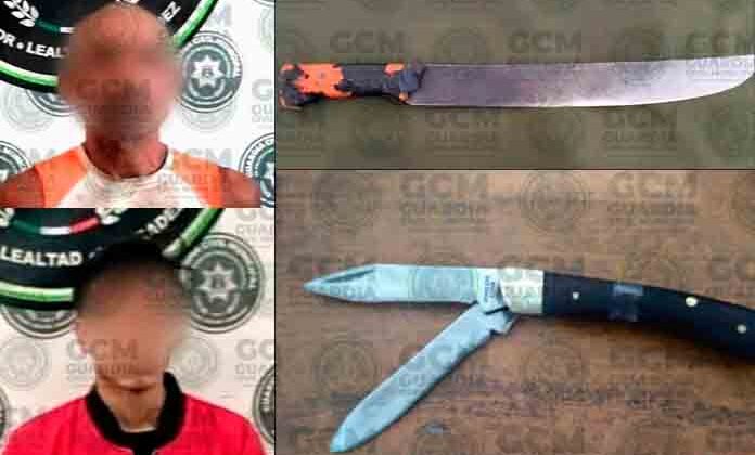 El primer arresto se realizó durante un recorrido sobre la calle Reforma, en la colonia Genovevo Rivas Guillén Tercera Sección, donde agentes municipales ubicaron a un individuo que alteraba el orden. Tras entrevistarlo y dialogar con él, se identificó como Roger “N”, de 45 años, a quien le encontraron un objeto punzocortante semejante a un machete.