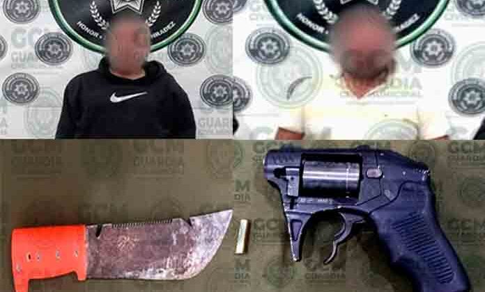 Oficiales de la Guardia Civil de Soledad detuvieron a dos hombres por portación de arma prohibida, Los hechos ocurrieron en la colonia Valle de la Palma y Cabecera Municipal en patrullajes desplegados para combatir la incidencia delictiva.