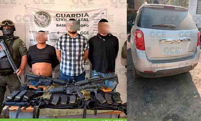 Tras darles alcance, los agentes localizaron en el interior de la unidad tres armas largas tipo M4 con cargadores abastecidos, así como tres chalecos balísticos y nueve cargadores útiles, además de cartuchos. Por ese motivo procedieron a detenerlos.