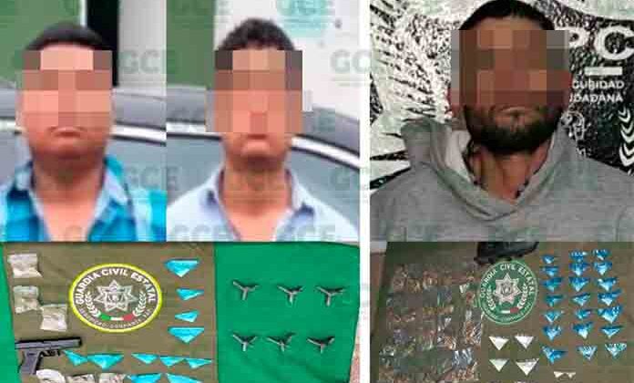 Operativos de la Guardia Civil Estatal para el combate al narcomenudeo, permitieron la detención de dos presuntos integrantes de grupos criminales, derivado de ello se aseguraron casi 70 dosis de droga.