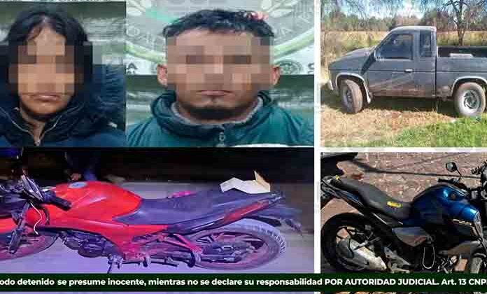 De esta forma, Carmen “N” de 23 años de edad y de Jorge “N” de 29 años, fueron detenidos luego de que se les asegurara una motocicleta marca Hero Hunk, color rojo con negro, modelo 2022, que tenía reporte de robo de la colonia Villa de los Cactus, al oriente de la zona metropolitana.