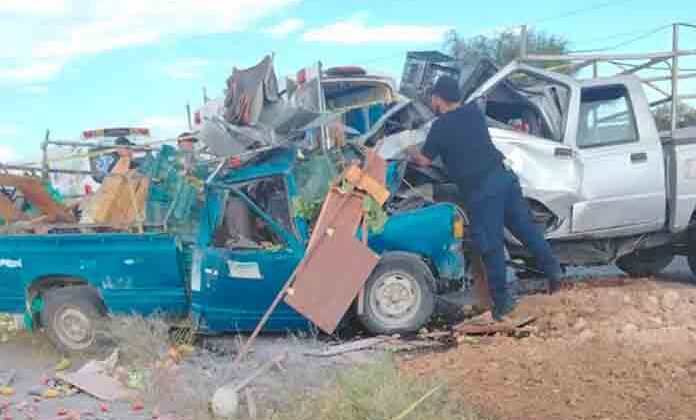 Dos muertos y un lesionado, así como fuertes daños materiales, es el saldo de un aparatoso choque de frente registrado en la carretera a Villa en Reyes, en donde impactaron dos camionetas a la altura de la comunidad de Laguna de San Vicente.