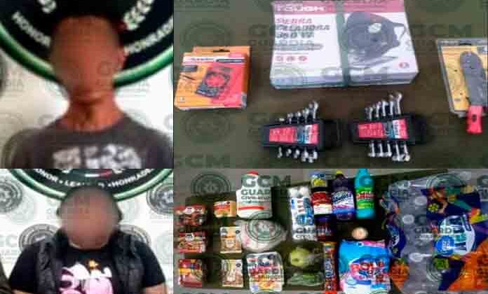 Policías de la Guardia Civil de Soledad detuvieron a dos hombres y una mujer por presunto robo en tiendas Bodega Aurrerá luego de que los vigilantes los sorprendieran cuando se apoderaban de diversa mercancía.