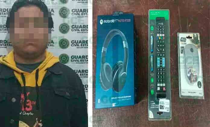La oportuna reacción de la Guardia Civil Estatal permitió la detención de un presunto ladrón, ubicado en un supermercado de la capital potosina, tras pretender huir con mercancía del lugar.