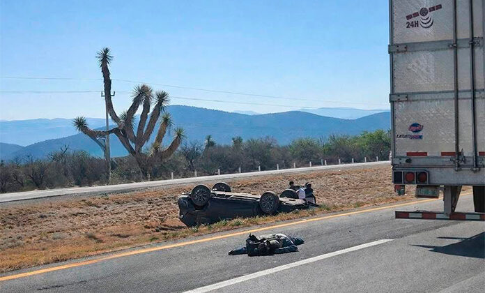 MATEHUALA. Un jornalero perdió la vida al ser arrollado por una camioneta que también acabó volcada, en hechos ocurridos en la carretera ‘57, al sur del municipio, cuando los paramédicos arribaron a prestarle ayuda al infortunado ya había dejado de existir.