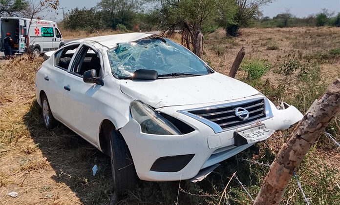 TAMUÍN. Un vehículo en el que viajaba una familia originaria de Nuevo León volcó en la carretera estatal Tamuín-San Vicente.