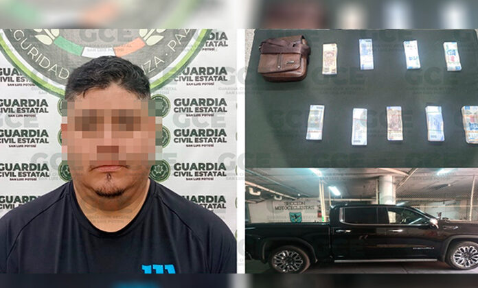 Santa María del Río.- Elementos de la Guardia Civil Estatal detuvieron a una persona que llevaba consigo más de medio milllón de pesos y cuya procedencia no pudo demostrar.