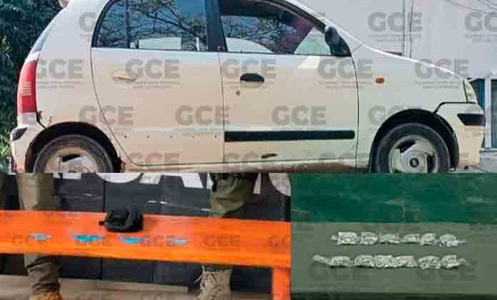 En operativo coordinado entre agentes de la Guardia Civil Estatal y el Ejército mexicano, se aseguraron varias dosis de droga que se encontraron tiradas y un vehículo abandonado, esto en distintos municipios.