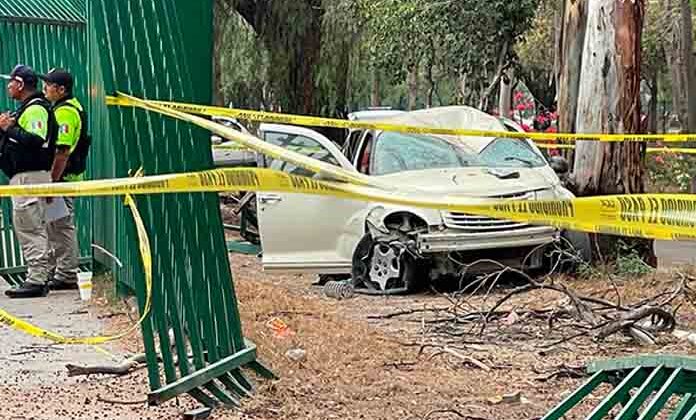 Un muerto y un lesionado es el saldo de un terrible accidente en el parque Tangamanga 2, en donde un automóvil que circulaba por la calle Saucito derribó una parte de la cerca de reja y se estampó contra un árbol, quedando el carro también seriamente destrozado.