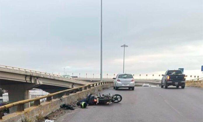 Fue en ese tramo en donde perdió el control del volante y de esta forma se desplomó al asfalto en donde derrapó por varios metros golpeándose contra la contención de concreto.